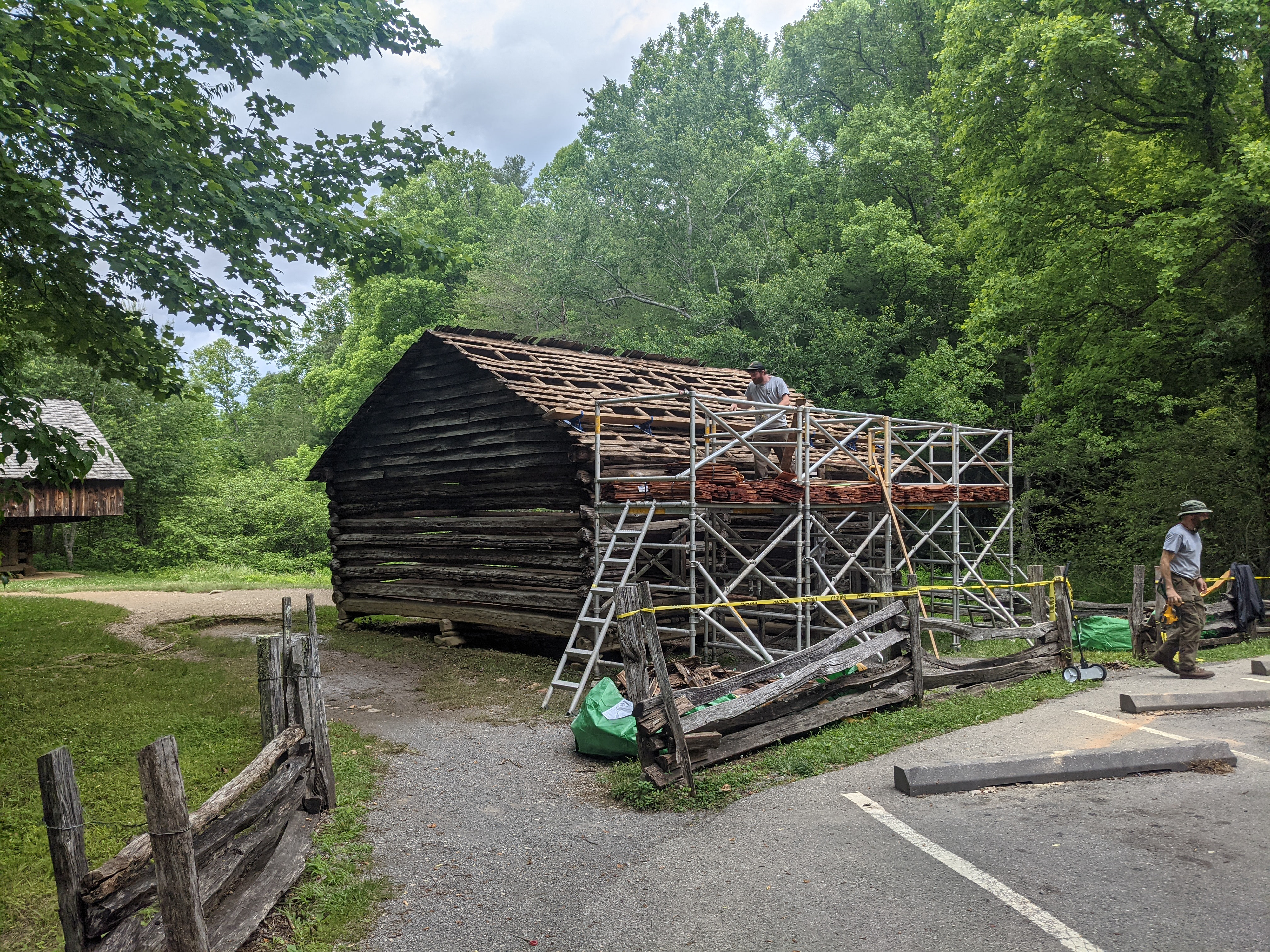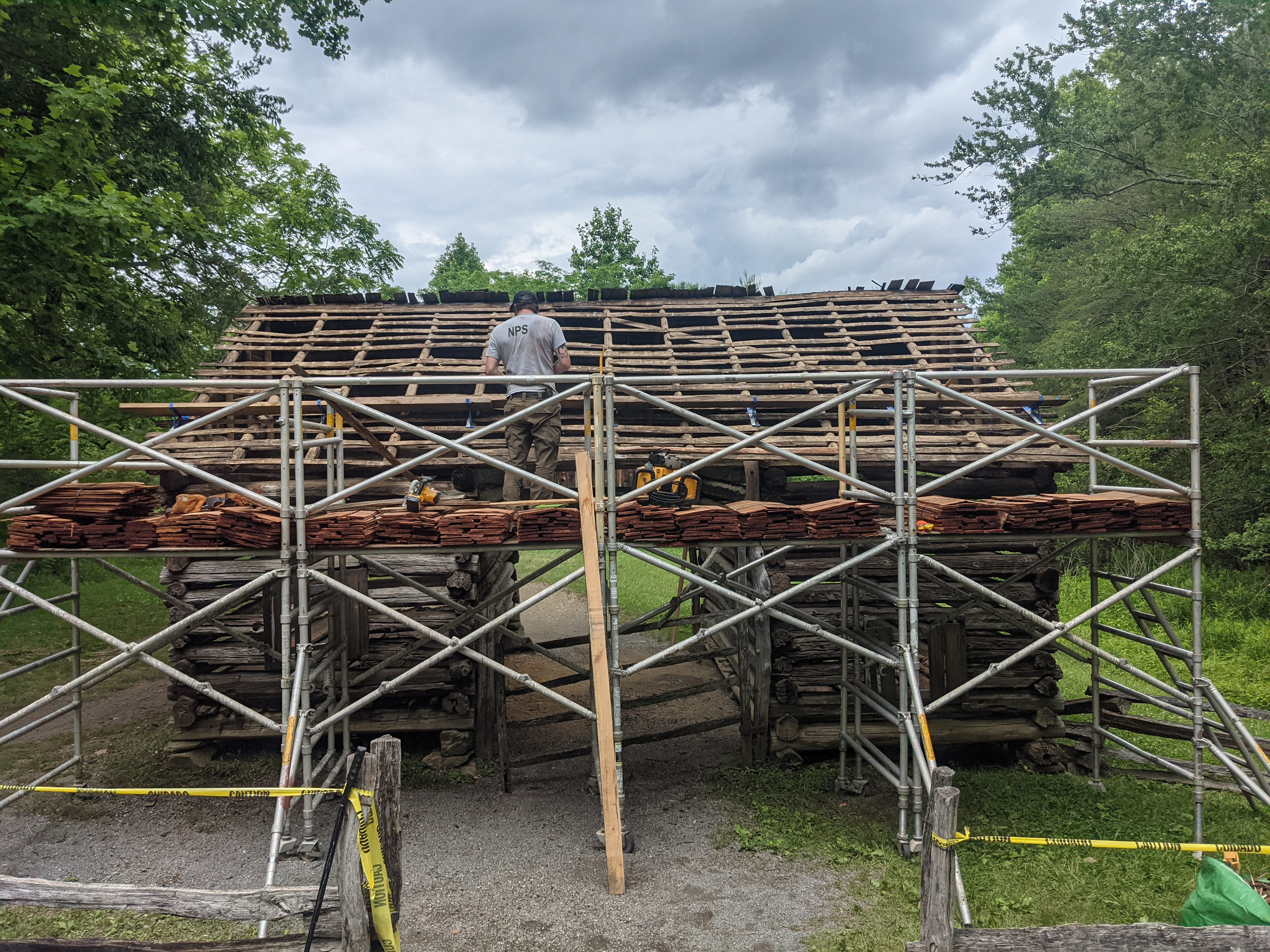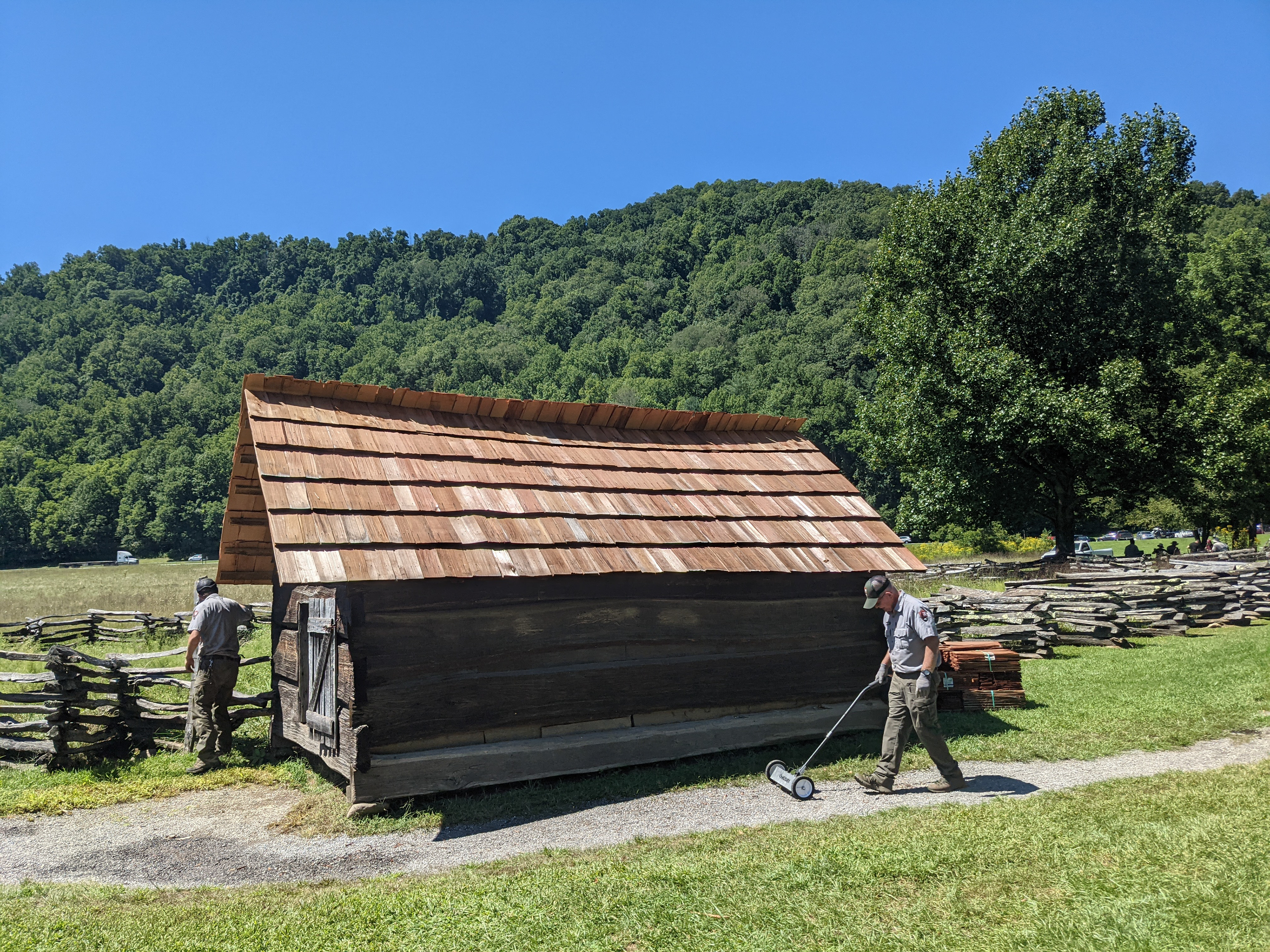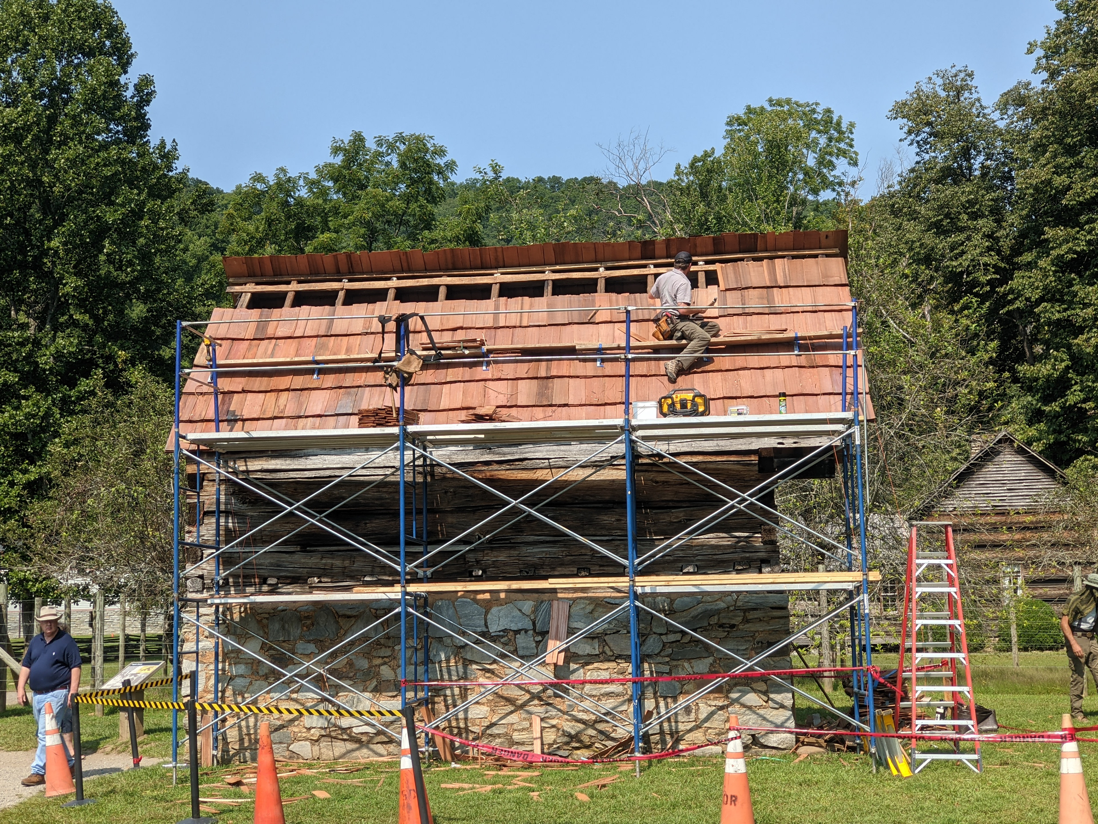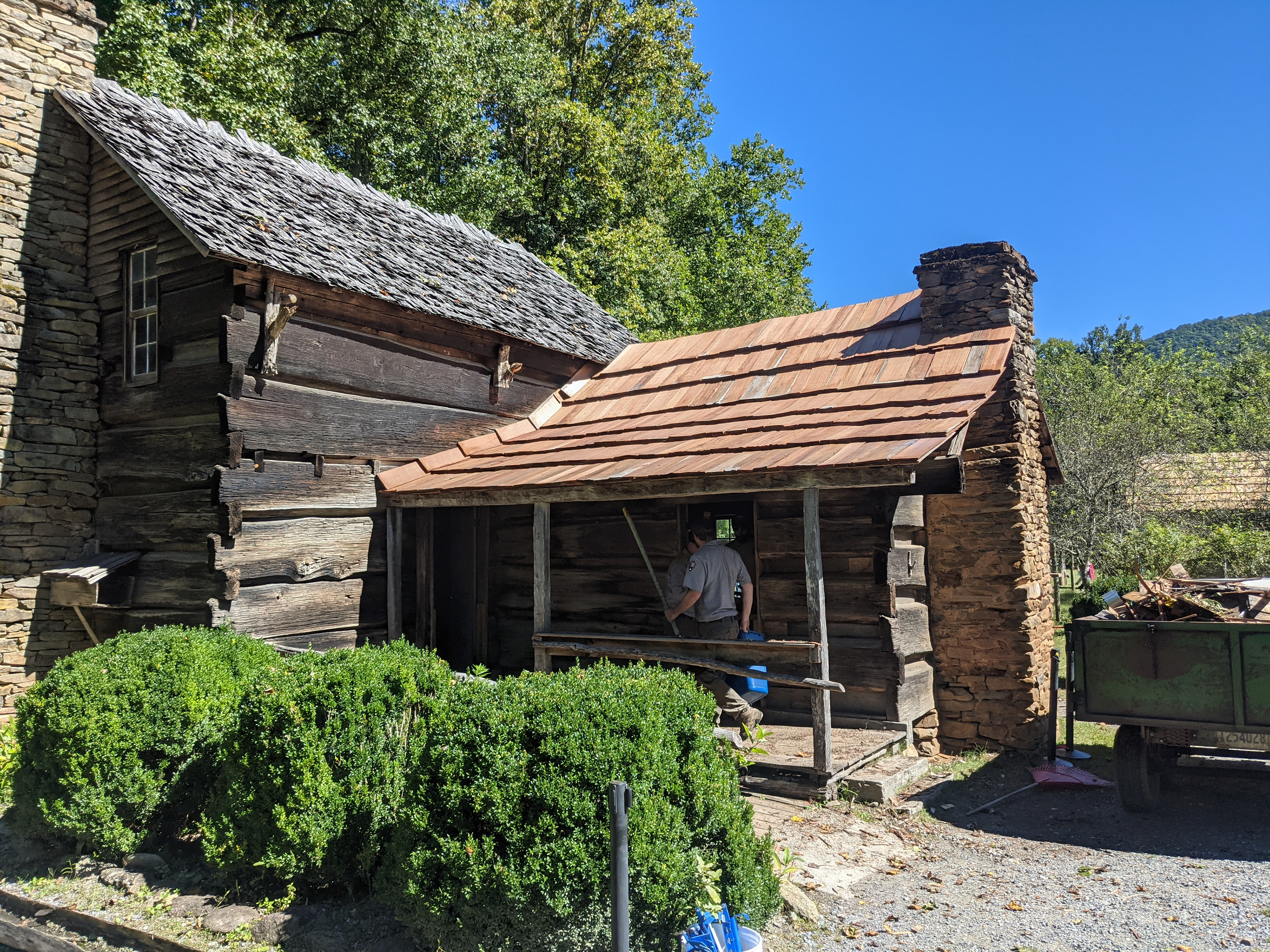 Pictured at the bottom are many structures that I had the honor of repairing throughout the Great Smoky Mountains National Park. These included cedar shake roofs and structural repairs to the foundational logs and perlins.